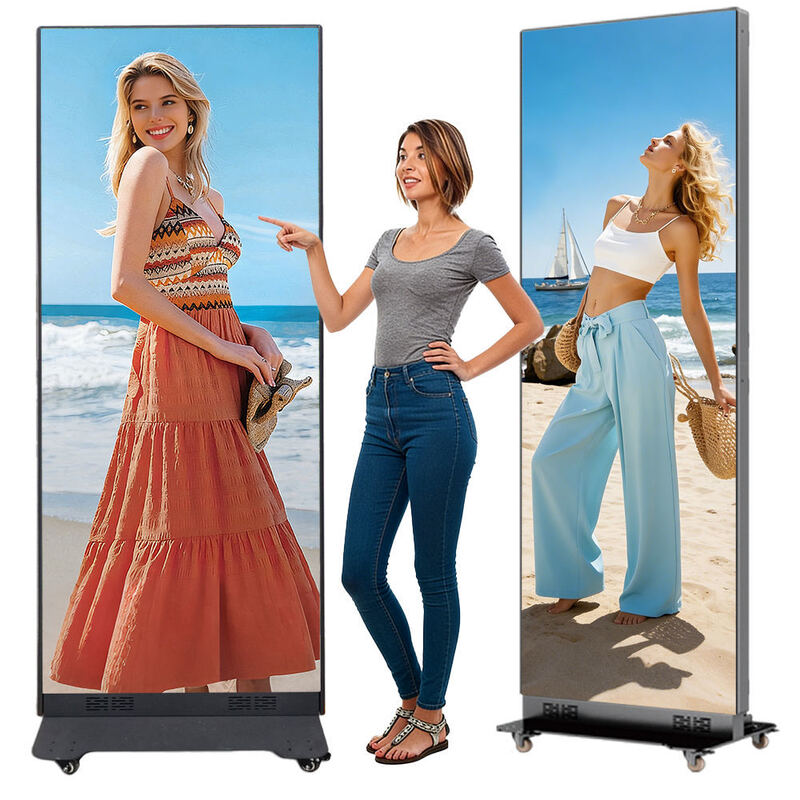 The poster LED display screen supports multiple fixing methods, such as floor standing LED screens/wall mounted LED displays/suspended LED poster screens, and other forms, suitable for indoor temporary and semi fixed scenes.